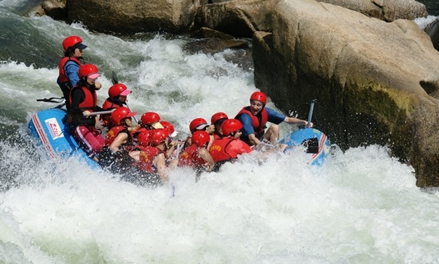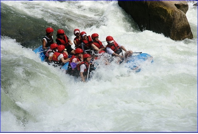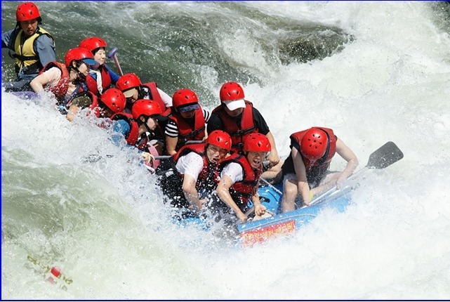 원래 래프팅이란 나무로 엮은 뗏묵을 뜻하는 말고 뗏먹을 타는 것을 의미한다. 그러나 요즘에는 여럿이 함께 pur이나 고무로 만든 배를 타고 노을 저으며 골짜기와 강의 급류를 타는 레포츠를 가리킨다. 래프팅의 장점으로는 첫째 장애물이 있거나 물 깊이가 얕아도 물이 있고 급류가 있는고이면 어디서나 안전하게 스피드와 스릴을 즐길 수 있고 둘째 여러사람이 힘을 모아야 가능한 운동이기 때문에 협동심과 인내심을 기르는데 좋다. 이밖에 온몸의 힘을 모아 물쌀으 해치며 노를 저어야 하기에 전신운동의 효과가 크고 신선한 공기를 마음껏 마실 수 있어 건강에 더없이 좋다는 장점도 있다.