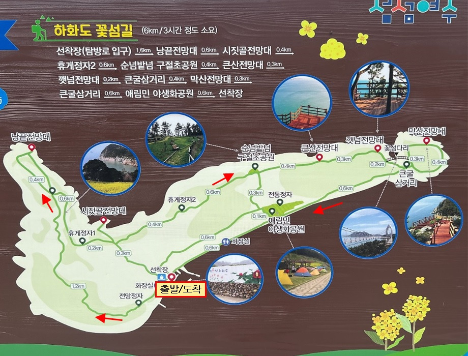 ※ 트레킹 코스 : 하화도선착장→전망정자→낭끝전망대→휴게정자1→시짓골전망대→휴게정자2→순넘밭넘구절초공원