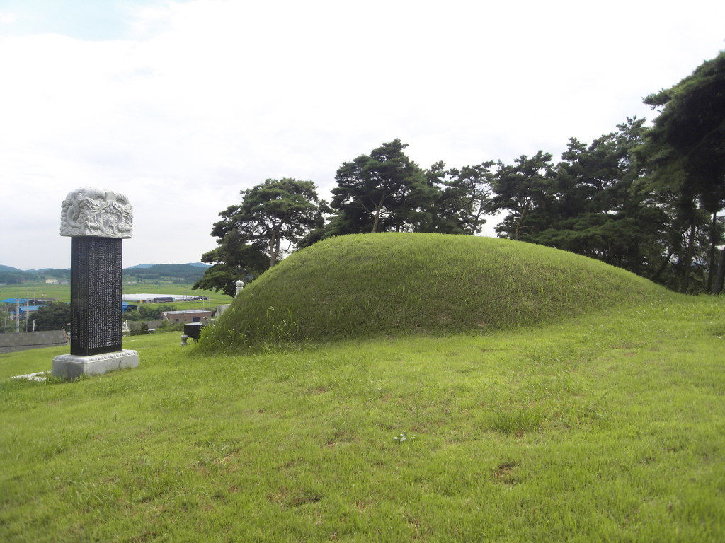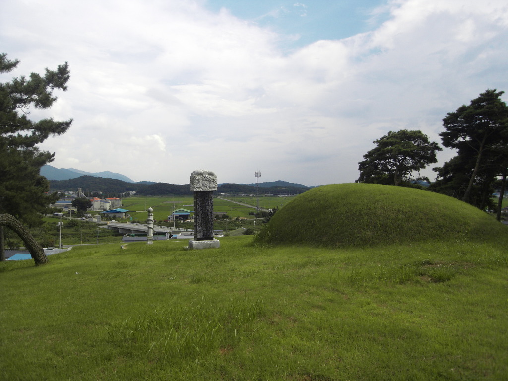 묘 주변은 봉긋봉긋한 봉우리들이 유난히 많다. 금산(金山)이다. 관주산(貫珠山)이란 산 이름까지 있는 것을 보면 짐작할 만하다. 멀리 조산엔 뾰족뾰족한 화산(火山) 형태도 보이고, 일자(一字)로 쭉 뻗은 토산(土山)에 문필봉도 아름답게 솟았다. 주위 산세에 포진한 오행(五行)이다. 오행사상은 풍수학의 근본이 된다.