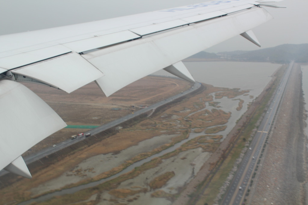 한반도에 가까워 지니까 비구름에 아래가 전혀 보이지 않아 역시 비를 몰고다니는