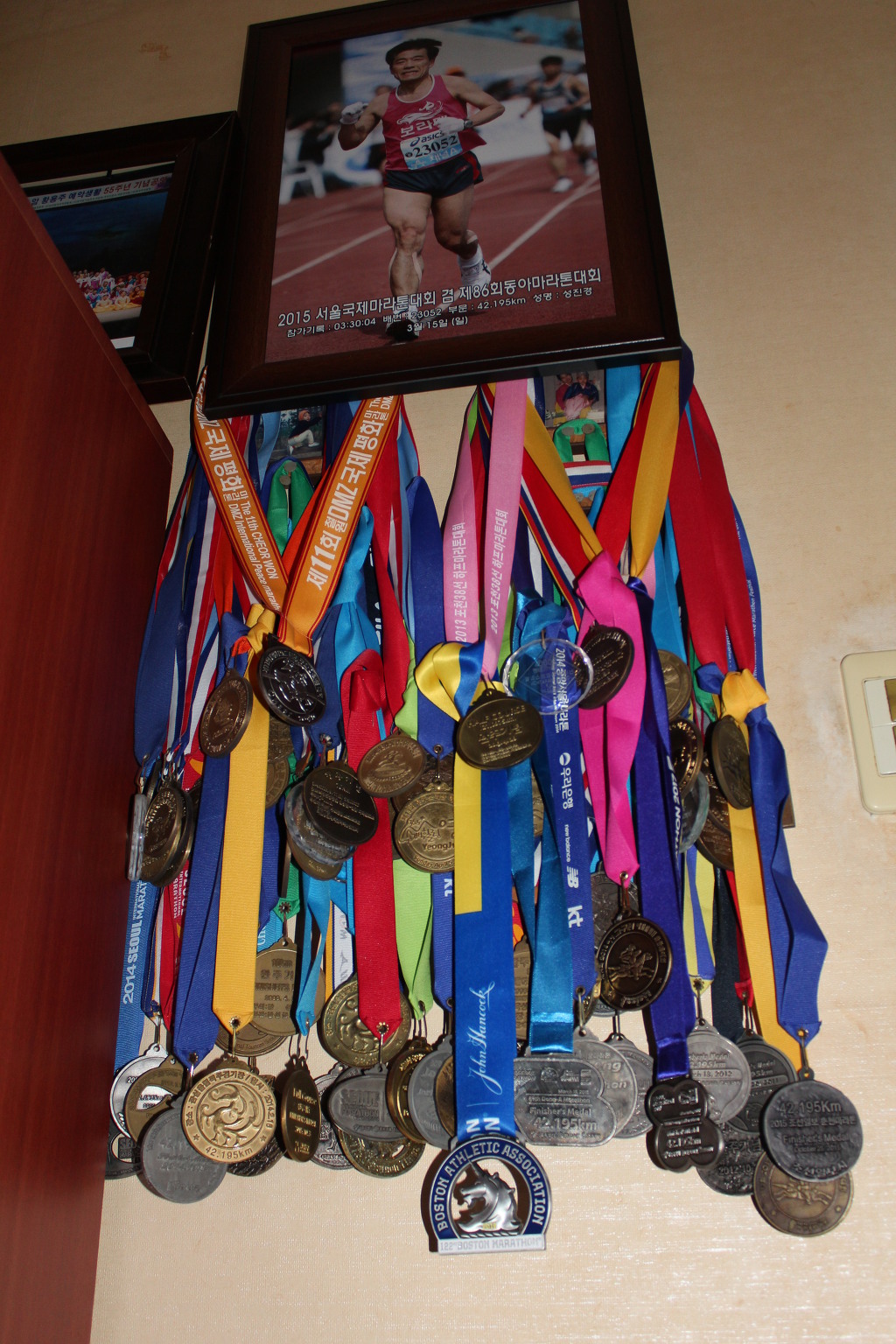 보스톤마라톤 완주메달 ▲ 가운데 유니콘 로고