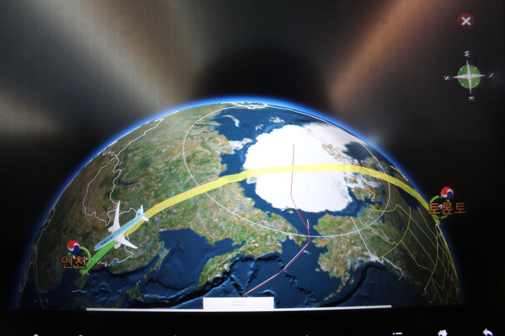 돌아오는 비행기는 토론토에서 캐나다 북쪽~북극을 통과하여 러시아를 거쳐~