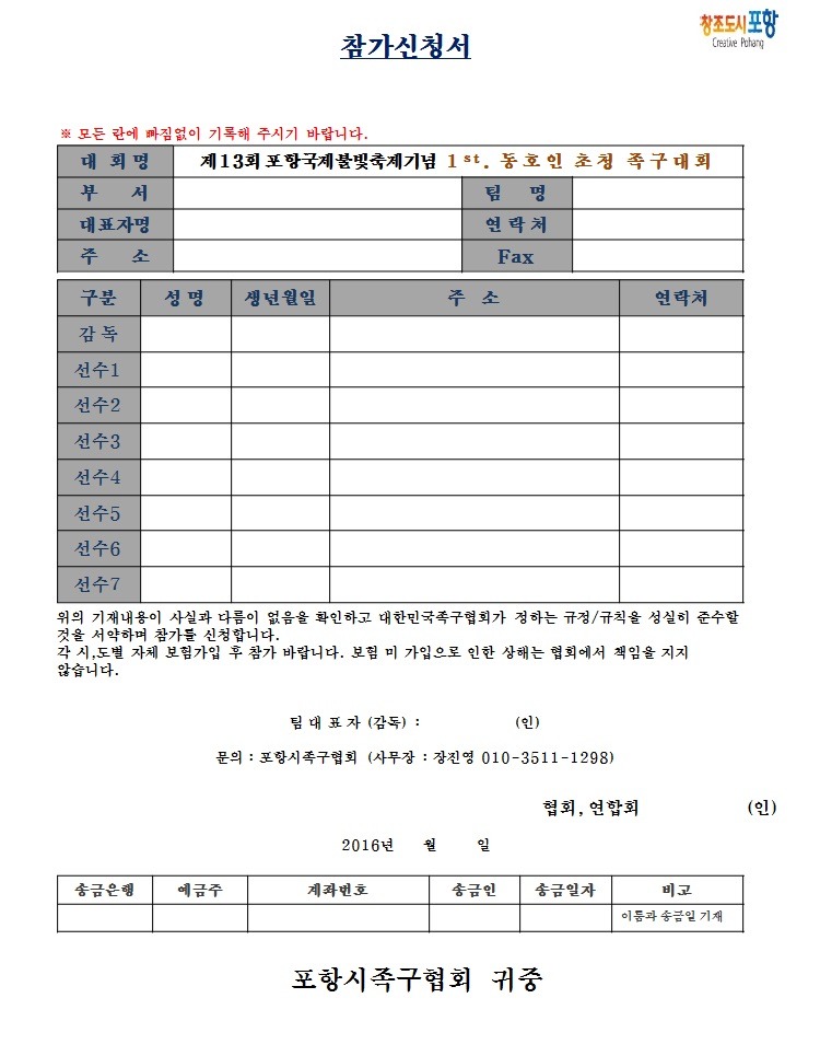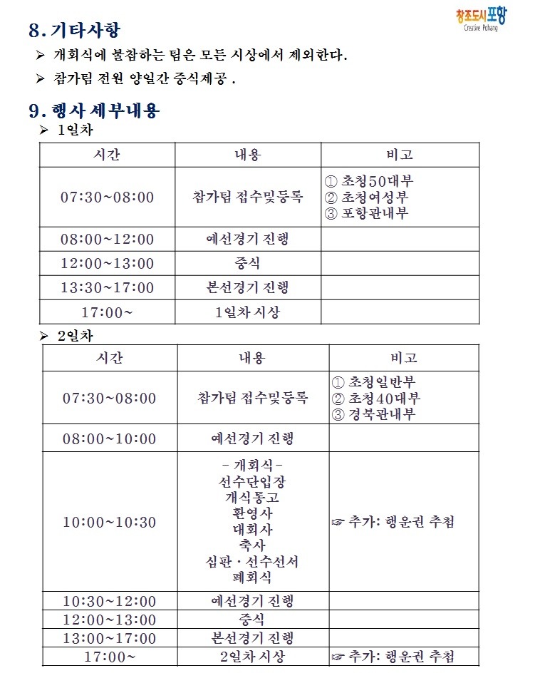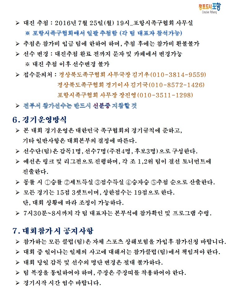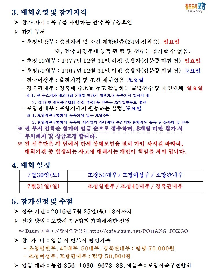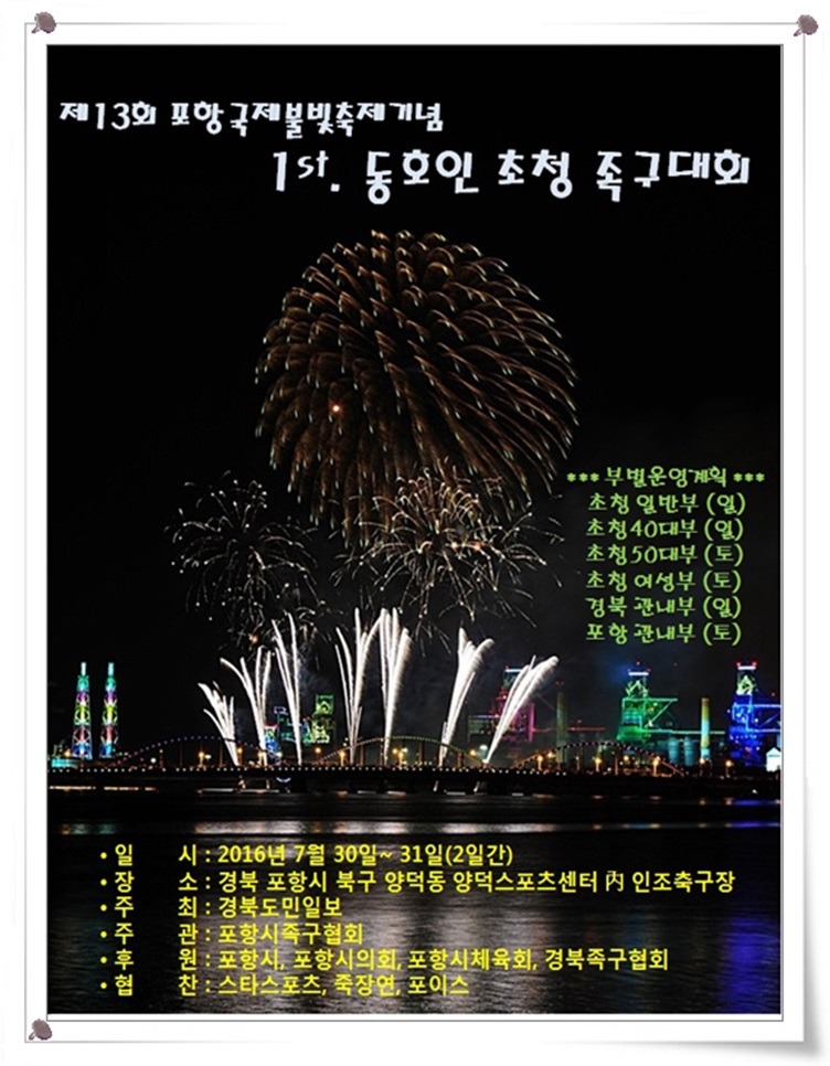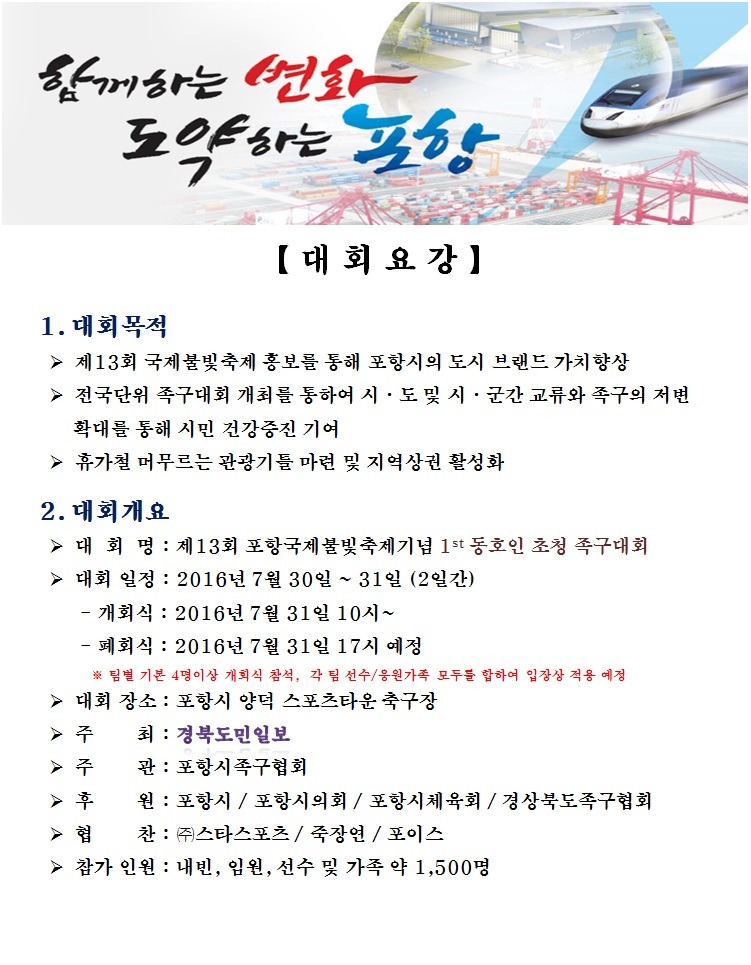 [스크랩] 제13회 포항국제불빛축제기념 "1st. 동호인 초청 족구대회" 모집요강 작성자李석수|작성시간16.07.05|조회수22 목록 댓글 0 글자크기 작게가 글자크기 크게가 제1회 포항국제불빛축제기념 족구대회 모집요강.pdf 첨부파일첨부된 파일이 11개 있습니다. jpg 파일 1.jpg 다운로드 jpg 파일 2.jpg 다운로드 jpg 파일 3.jpg 다운로드 jpg 파일 4.jpg 다운로드 jpg 파일 5.jpg 다운로드 jpg 파일 6.jpg 다운로드 jpg 파일 7.jpg 다운로드 jpg 파일 제1회_불꽃축제기념_동호인_초청_족구대회_시안_Ver6.jpg 다운로드 gif 파일 anigif.gif 다운로드 pdf 파일 제1회 포항국제불빛축제기념 족구대회 모집요강.pdf 다운로드 gif 파일 111~999.gif 다운로드 다음검색 스크랩 원문 : 족구100인클럽 현재 게시글 추가 기능 열기 북마크 공유하기 신고 센터로 신고 댓글 댓글 0 댓글쓰기 답글쓰기 댓글 리스트