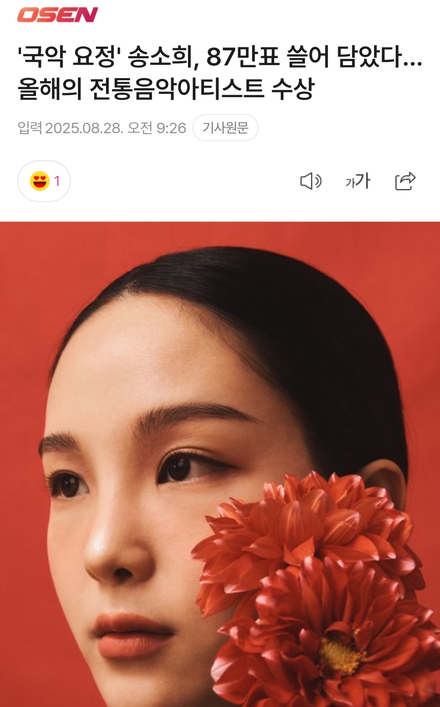 87만표 싹쓸이!! 올해의 전통음악아티스트상 수상 작성자세상은요지경|작성시간25.08.28|조회수90 목록 댓글 4 글자크기 작게가 글자크기 크게가 https://naver.me/xTsTthX1 다음검색 현재 게시글 추가 기능 열기 북마크 공유하기 신고 센터로 신고 댓글 댓글 4 댓글쓰기 답글쓰기 댓글 리스트 작성자흰여울 | 작성시간 25.08.28 반가운 소식 감사합니다^^ 작성자totor | 작성시간 25.08.28 오! 작성자H공주 | 작성시간 25.08.28 대박,, 믓찌다 울 소희히힣 작성자Tkdwn6464 | 작성시간 25.09.10 화이팅! 입니다. 댓글 전체보기