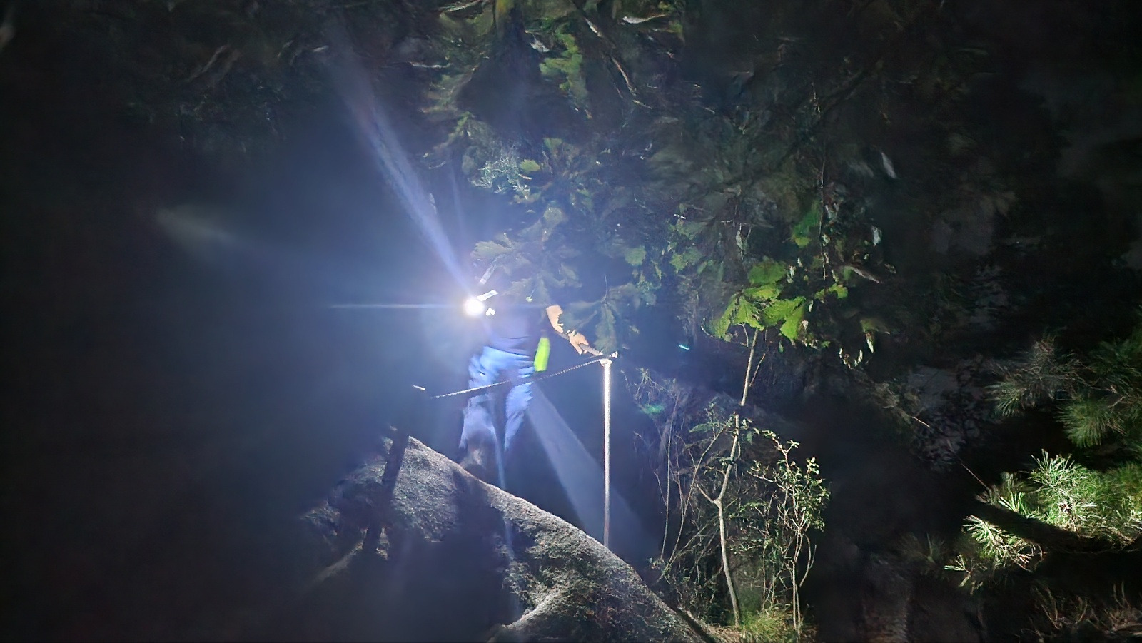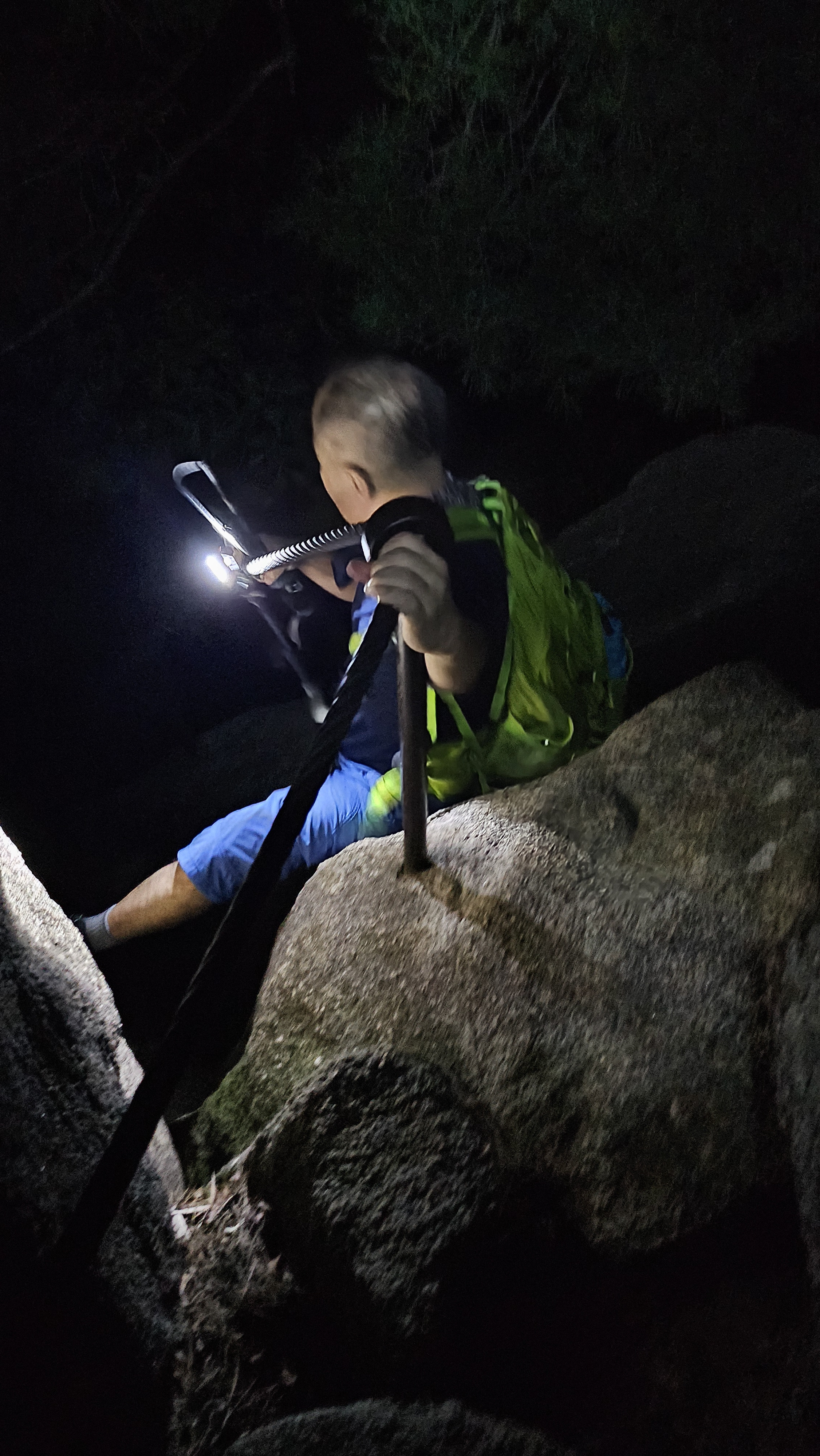 삼단 스틱 하단이 빠져 도망가서 다시 올라갔다 내려와 회수
