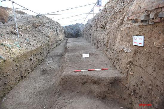 방사지에서는 남쪽으로 약 160미터를 수탕동시 구궁격간의 "정자형"주간거리로 하고 있다.도중 편북의 큰길.금신수의 标新街(正好新新)거리와 딱 맞아떨어졌고, 标新街(。新新)거리는 당나라 거리보다 약 1.8m 높았다.이 거리는 정식 발굴 없이 현대 노반배관 도랑 밑에서 파낸 단면을 이용하여 고고학자들은 일찍이 도로, 노토가 단단하고 바퀴 자국이 있어 수당거리의 유품으로 명확히 남아 있는 것을 발견했다.1950년대 탐사자료에 따르면 이 간선도로는 길이 1000m, 폭 30m에 가깝다.이 거리는 방사지 이남의 동시 유적 발굴을 남북으로 구분해 남구가 좁고 북구가 넓다.