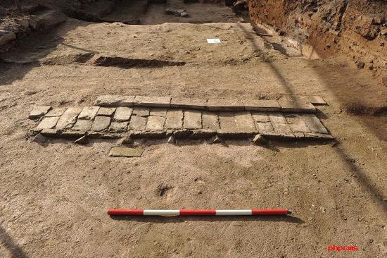 남구에서 수당유적을 탐사 및 발굴하는 단위는 44개로 도로 3개, 도랑 3개,공방유적 1매, 벽돌갱 4구, 움 2구, 토정 14구, 재 구덩이 17개.세 길은 모두 남북으로 향한 것으로 기본적으로 평행하게 늘어서 있으며 간격은 36m이다.모두 비탈 모양을 하고 순지세는 남쪽에서 북쪽으로 내려갔다.노토는 단단하고 두께 0.5미터로 도로표지에 바퀴 자국이 선명하게 나 있어 길가마다 도랑이 있다.