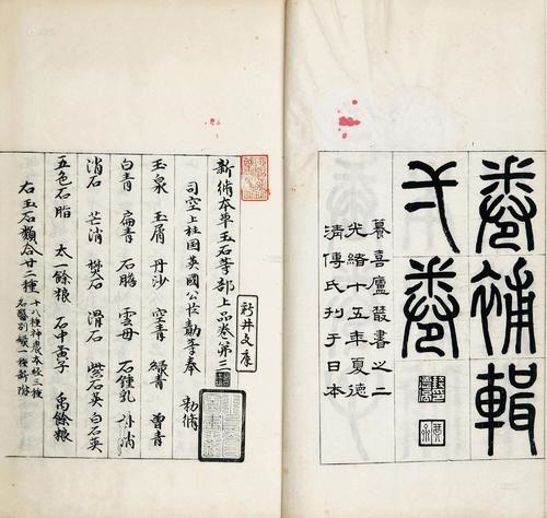 중국어 제목 '신수본초(新修本草이름(이명) 《신수본초》《당본초》작자소경 등 성서연대당(成書年唐)은 카테고리 중의학에 귀속되었다.전적