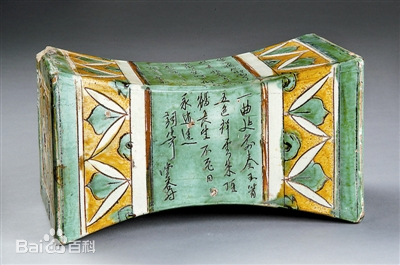刻有散曲《落梅风》的宋代束腰三彩枕