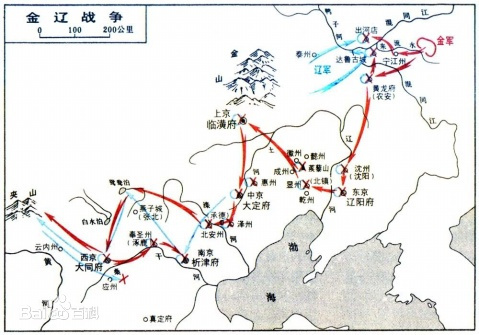 1112년 2월 10일 천조제가 춘주(고지 지금의 몽돌천현 돌천진에서 북서쪽으로 약 60킬로미터 떨어진 보석진 경내)로 가서 부근의 여진족의 추장을 불러들여 북으로 향했는데, 잔치에 취해서 여러 추장들에게 춤을 추게 하였더니 완안아골만 앙상하였다.천조제는 개의치 않았지만, 이때부터 완안아골타와 요나라 사이가 불화가 되었다.완안아골타는 9월에 더 이상 조서를 받지 않고, 그에게 복종하지 않는 다른 여진부락들을 병사로 쓰기 시작했다.완안아골타는 1114년 봄 반요(反遼)로 공식 파병됐다.천조제는 처음엔 완안아골타를 큰 위협으로 여기지 않았지만, 완안아골타를 진압하기 위해 파견된 모든 군대가 패배한다.1115년 천조제는 여진의 위협을 해결하기 위해 친정 명령을 내렸지만, 요군은 곳곳에서 여진군에 패배한다.이와 동시에 요나라에서도 반란이 일어났고, 요 상경에서는 예리 장노의 반란이 일어나 이 반란이 곧 진정되었지만 요나라 내부를 분열시켰다.같은 해 완안아골타는 왕이 건국되었는데, 국호는 금이며, 연호는 귀국하여 도회령을 정하였다. 【38】 같은 해 가을, 금군은 요나라의 황룡부를 함락시켰는데, 요나라는 심한 타격을 받았다.이후 원발해국에 있던 도쿄에서도 고영창의 반란이 일어나 자립하였다.이 반란은 1116까지 계속되었다.4월에야 겨우 평정되었다.5월의 여진은 기회를 타서 점령하였다.요도쿄와 심주.