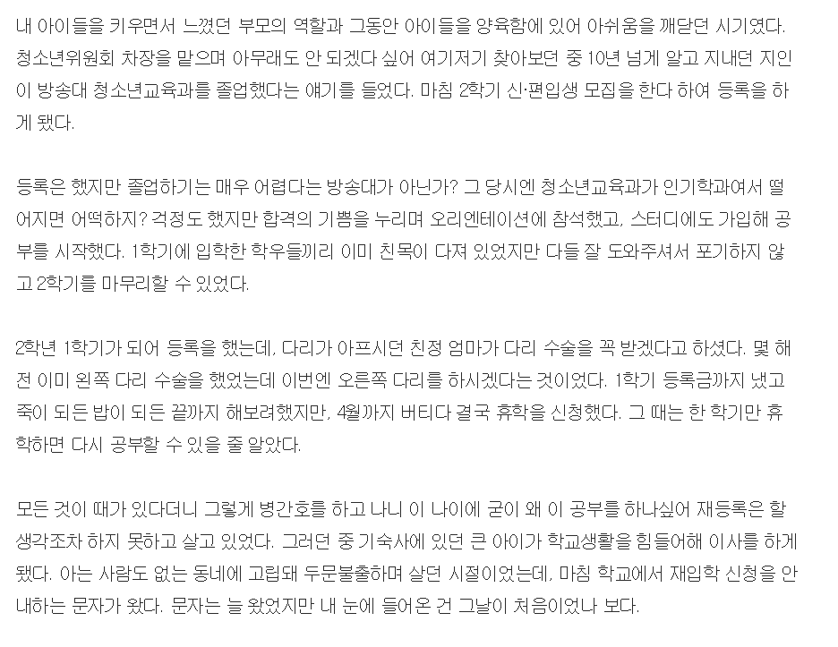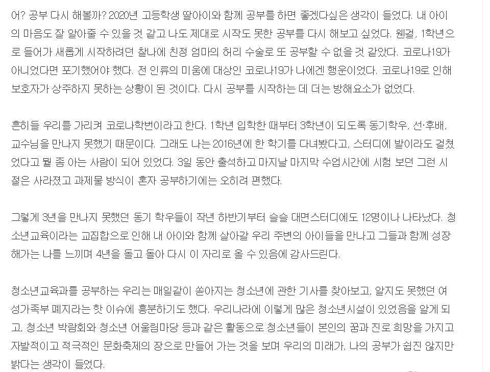인생을 바꾸는 재입학 작성자권진희(3학년)|작성시간23.06.30|조회수11 목록 댓글 0 글자크기 작게가 글자크기 크게가 다음검색 현재 게시글 추가 기능 열기 북마크 신고 센터로 신고 댓글 댓글 0 댓글쓰기 답글쓰기 댓글 리스트