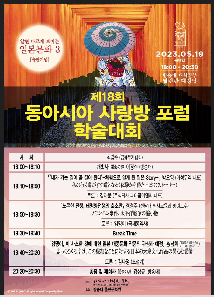 일본어, 일본문화 및 역사 관련 동아시아사랑방포럼이 개최됩니다.