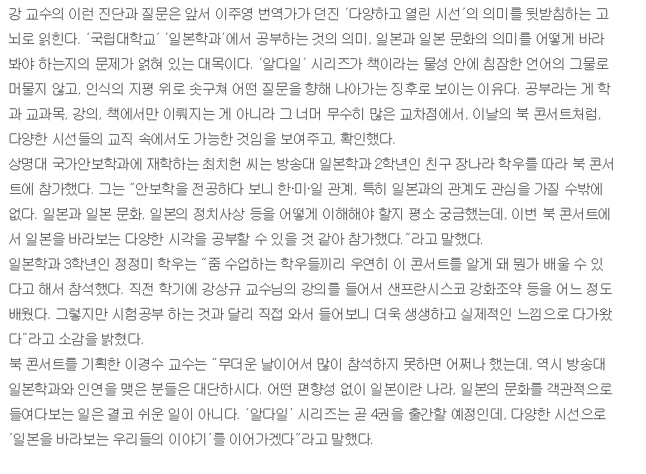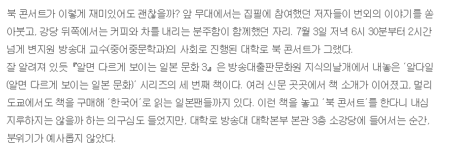 뜨거웠던[알면 다르게 보이는 일본 문화3]북 콘스트 작성자권진희(3학년)|작성시간23.07.10|조회수26 목록 댓글 0 글자크기 작게가 글자크기 크게가 다음검색 현재 게시글 추가 기능 열기 북마크 공유하기 신고 센터로 신고 댓글 댓글 0 댓글쓰기 답글쓰기 댓글 리스트