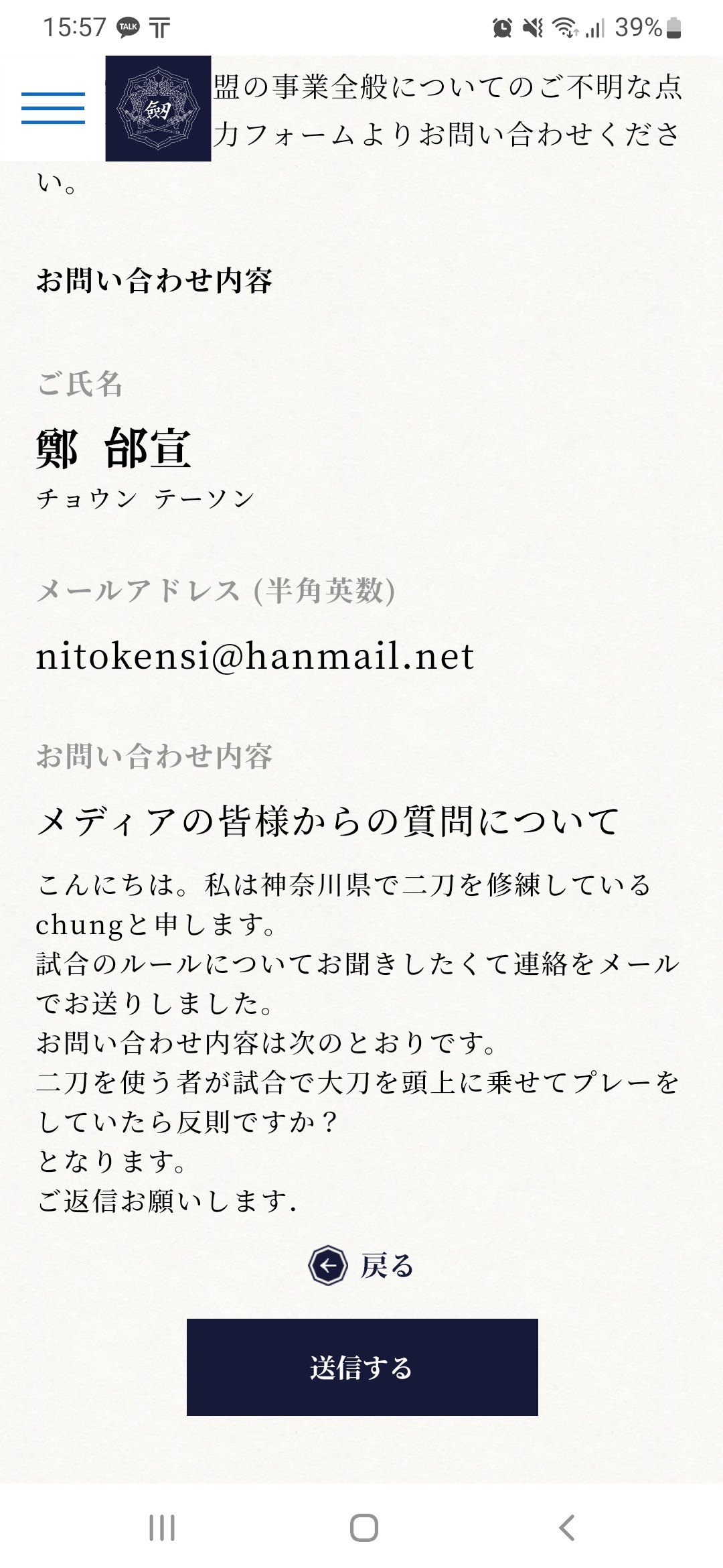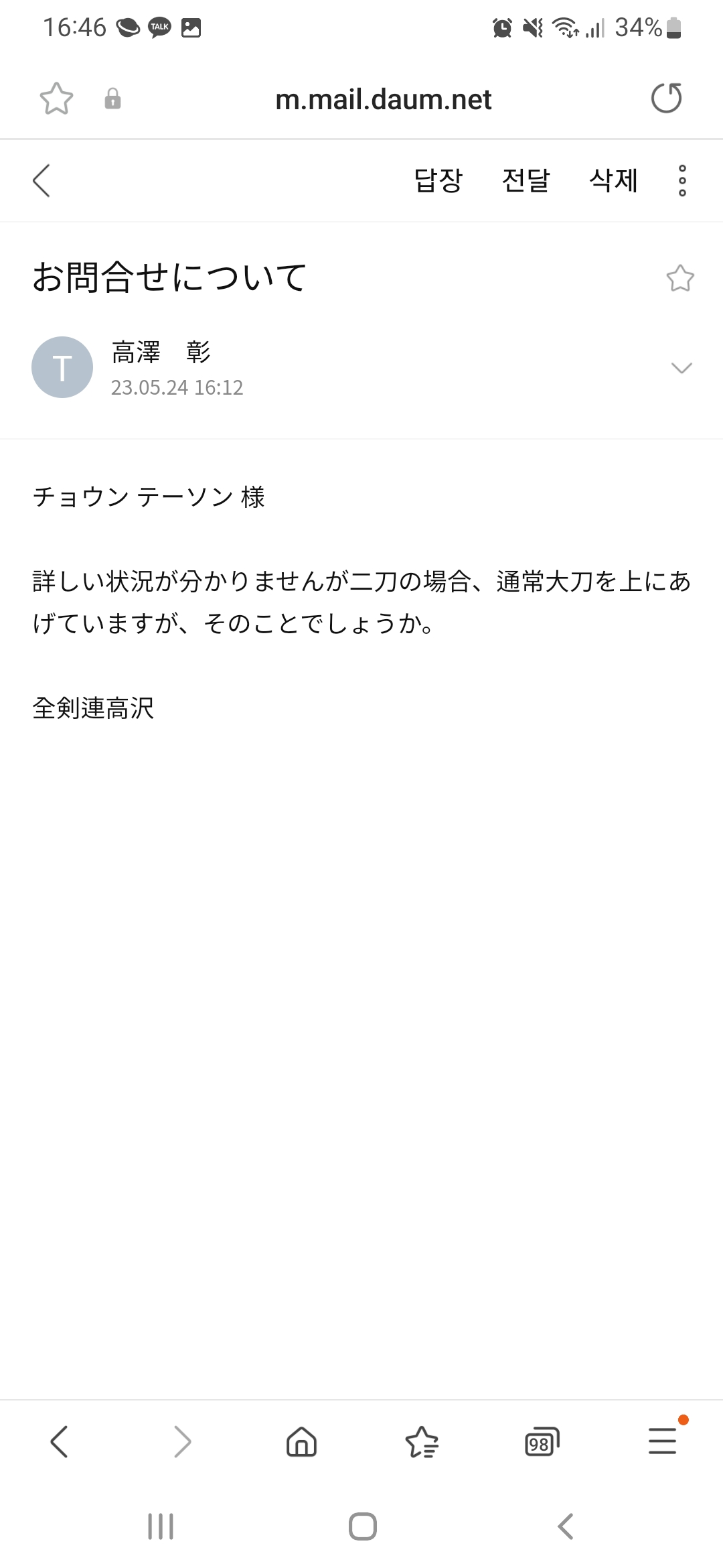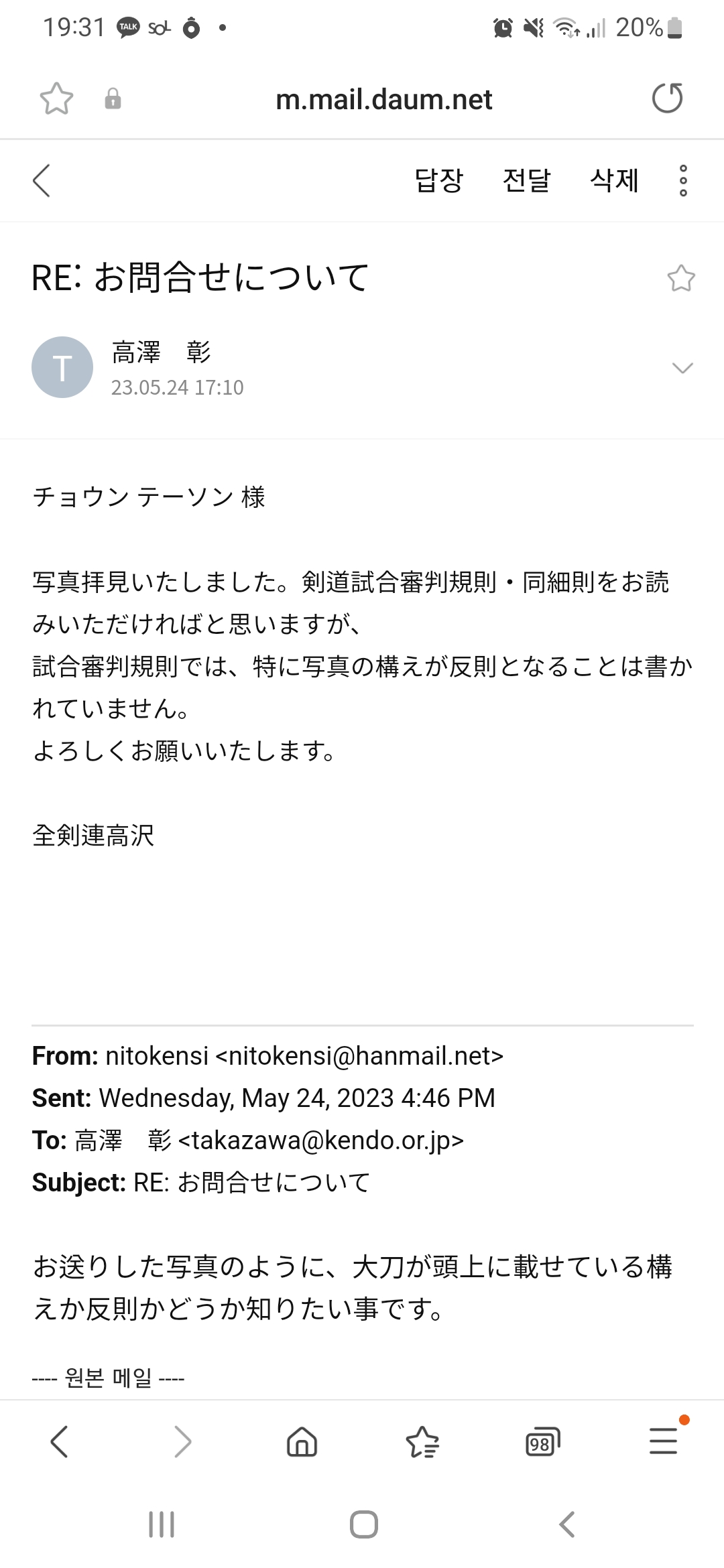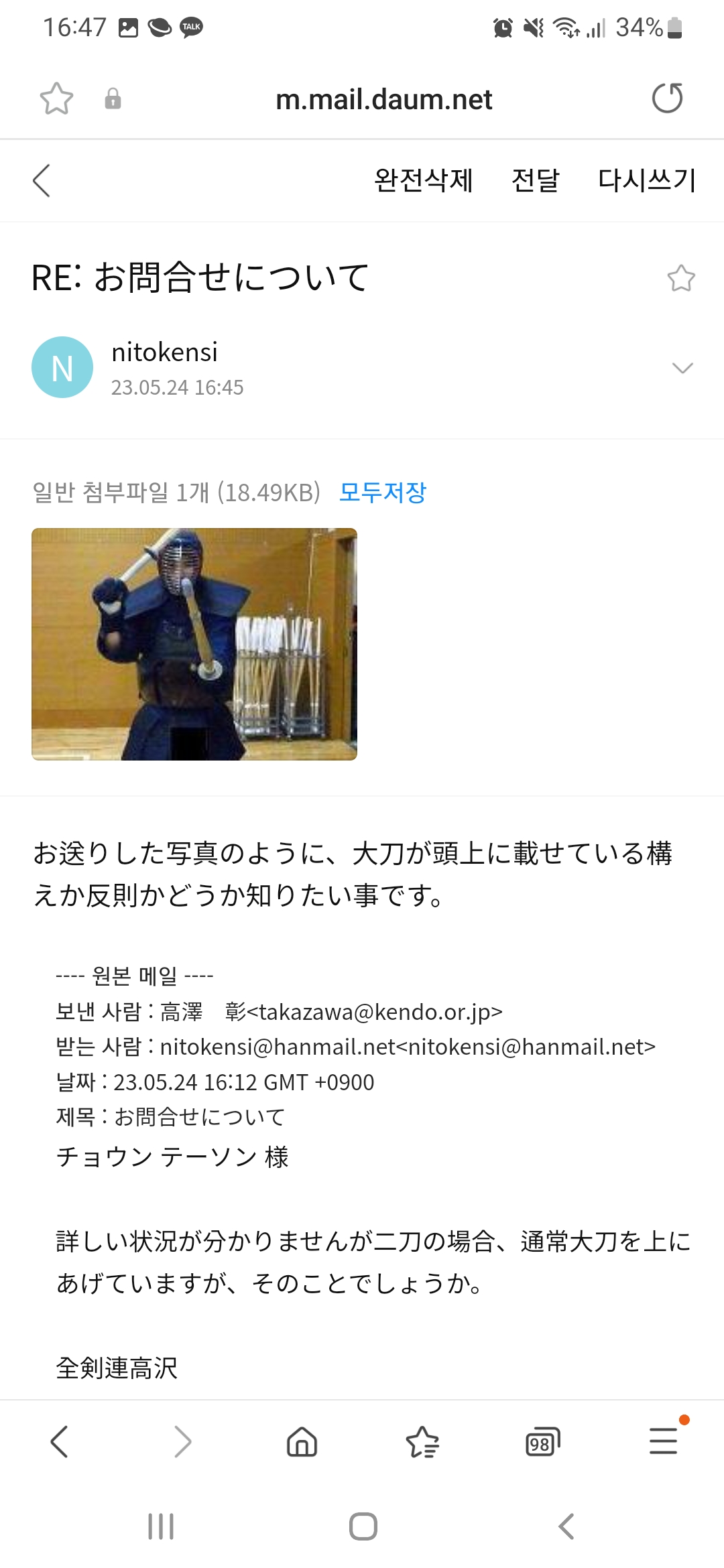 [규정에대한 질문]이도상단을 할때 대도를 머리에 대고있으면 반칙? 작성자nitokensi|작성시간23.05.25|조회수180 목록 댓글 1 글자크기 작게가 글자크기 크게가 답은 아니다입니다. 이것에대해 전일본검도연맹의 공식메일로 23년 5월24일에 문의한결과 현재 심판판정룰에는적혀있지 않기에 반칙아니다. 라는 답변을 3시간만에 받았습니다. 다음검색 현재 게시글 추가 기능 열기 북마크 공유하기 신고 센터로 신고 댓글 댓글 1 댓글쓰기 답글쓰기 댓글 리스트 작성자준야 | 작성시간 23.10.05 대회때마다 엇갈린 심판이 많았는데 좋은 결과 감사합니다~ 댓글 전체보기