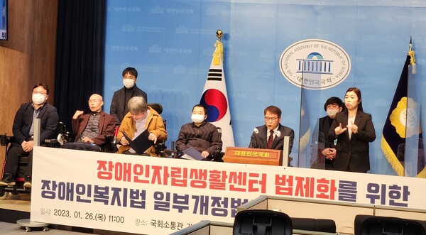 국회 보건복지위원회 이종성 의원과 한국장애인자립생활센터총연합회는 지난 1월 26일 국회 소통관에서 이 같은 내용의 장애인복지법 일부개정법률안 발의 기자회견을 개최했다.ⓒ에이블뉴스DB