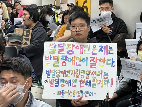 이날 행동에 나선 긴급투쟁단은 한자협을 비롯한 전국장애인차별철폐연대, 전국장애인부모연대, 전국장애인야학협의회, 전국탈시설장애인연대, 한국뇌병변장애인인권협회, 한국피플퍼스트으로 구성됐다.