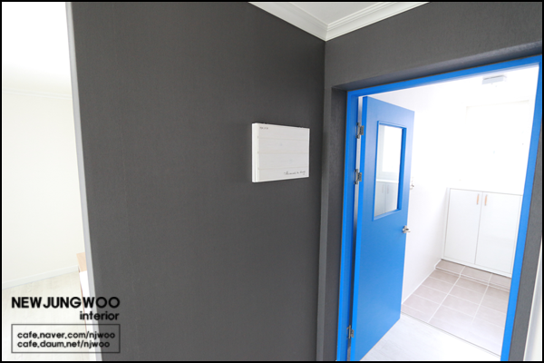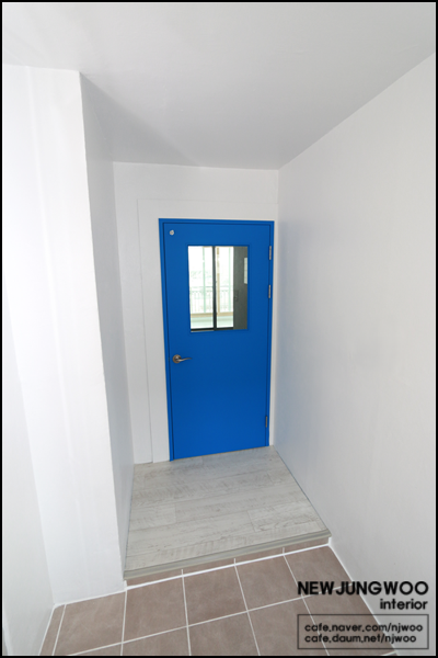 현관 블루컬러의 door를 더욱 확실하게 돋보이게 한다.