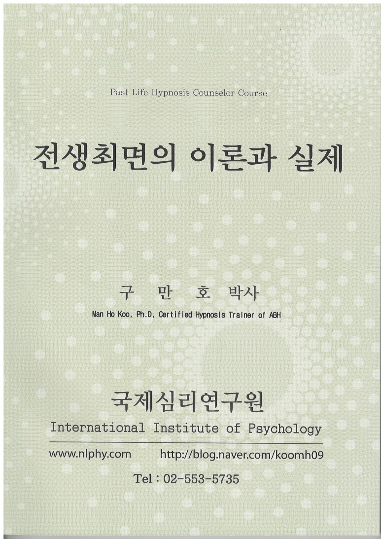 ○ 전생최면교육 지도자 : 국제공인 ABH 최면트레이너, 원장 구만호 박사 직강
