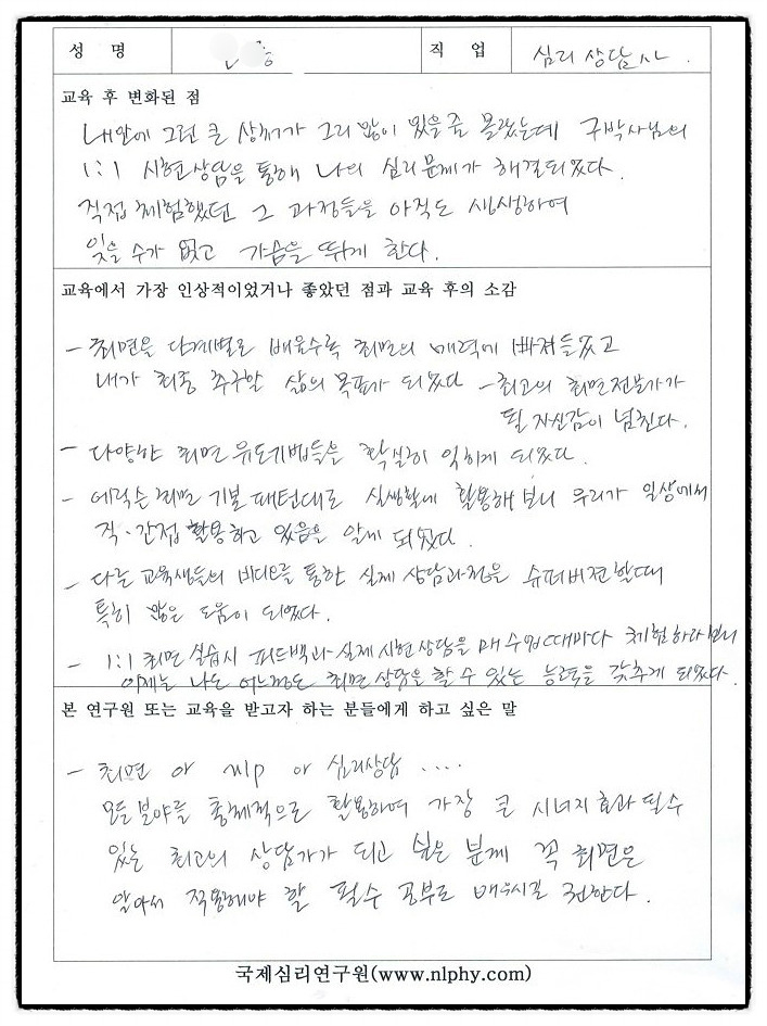에릭슨최면기본패턴대로 실생활적용은 일상생활에 직.간접으로 활용하고 있음을 알게됨.최종단계열공으로 나도 최면지도자로서 자신감(최면파이널)