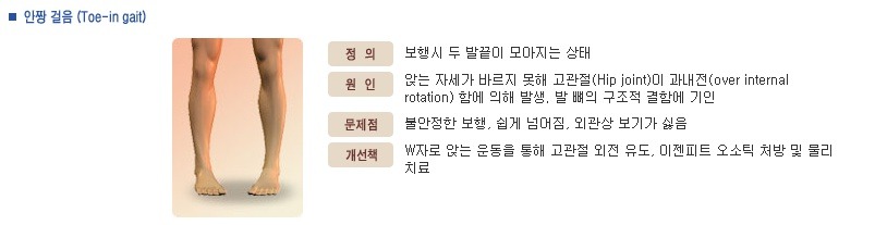 Genu valgum(외반슬) - X형 다리(무릎이 껌에 붙었네.라고 외우면 쉬움)