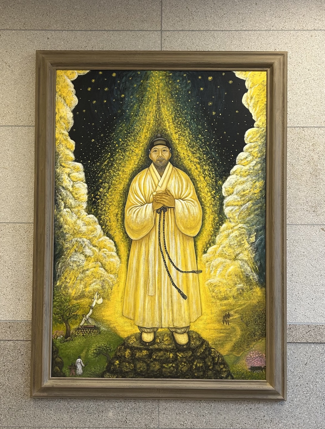 오늘 성당 들어오시면서 아브라함 성화 보셨지요? 지난주에 공지드린 대로, 어떤 어르신께서 봉헌해 주셔서, 심순화 카타리나 화백님께 의뢰를 드려 어제 아브라함 성화를 모시게 되었습니다. 성화에 대한 설명은 다음에 해 드리겠습니다. 어제 어떤 분이 김대건 신부님이냐고 물어보셔서 아브라함이라고 말씀드렸는데요, 한국적인 아브라함입니다. 한국인의 밥상 최불암 씨와 헛갈리실까봐 걱정되네요? 우리 본당 주보이신 성조 아브라함을 이렇게 성전 입구에 모시게 되어 영광이고, 하느님께 감사드립니다.