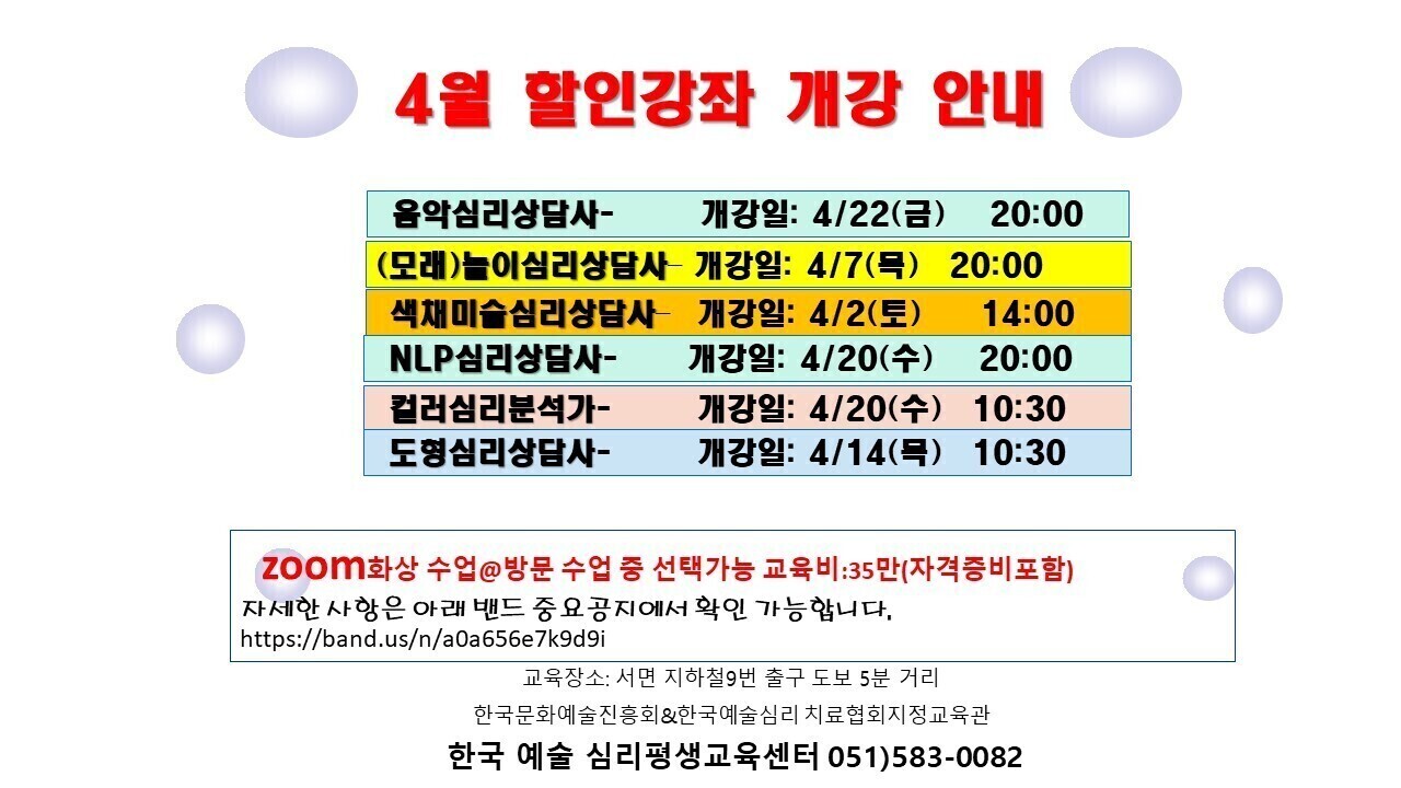 << 한국예술심리평생교육센터 4월 자격할인강좌 안내 >>