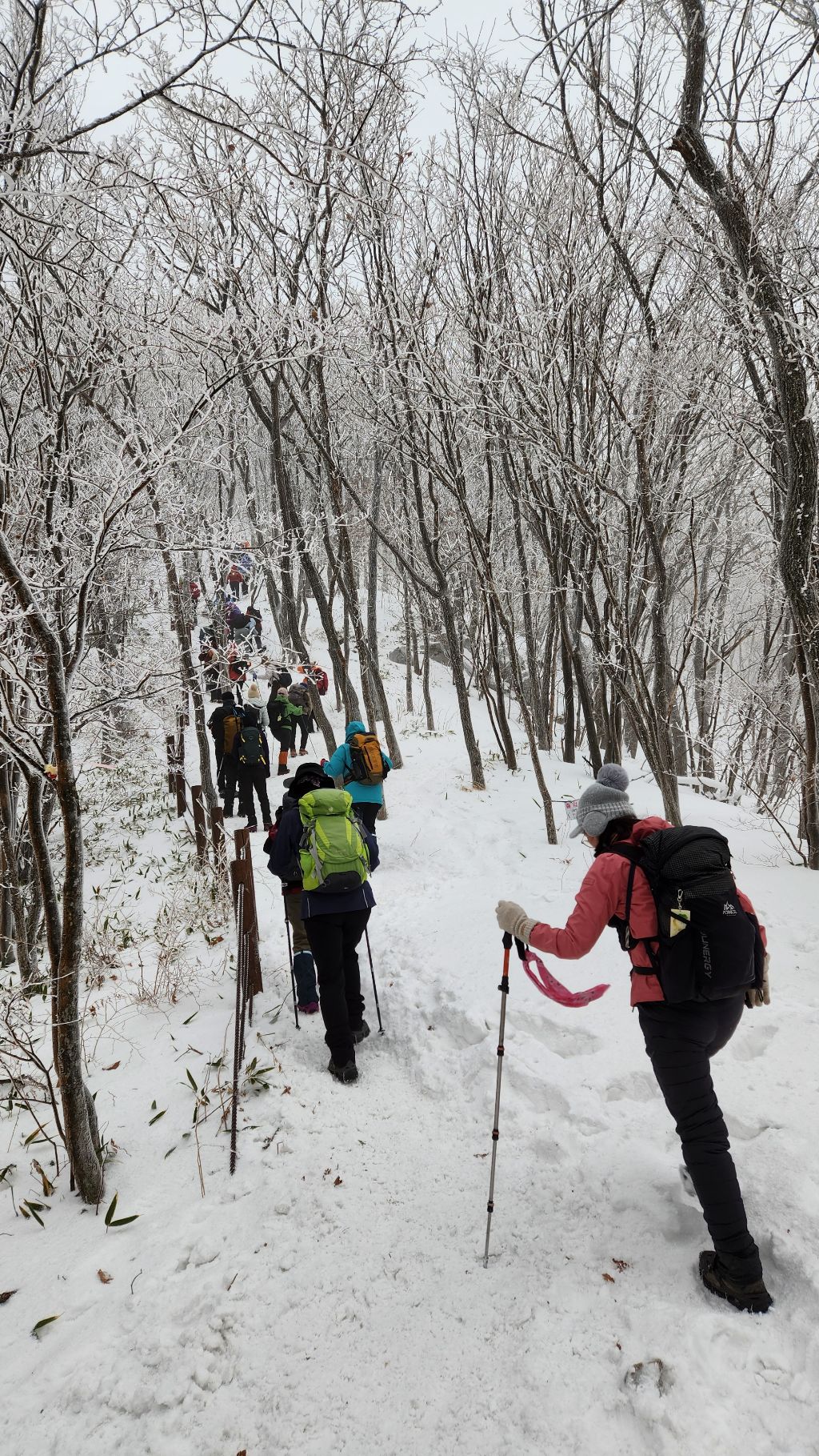 9시 45분에 운두령 고개에 도착하여 아이젠을 착용하는 등 눈길 장비를 착용하는데 오랜만에 눈길 산행이라 여러모로 서툴었다.