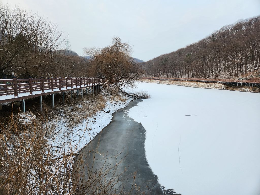 2026. 1. 19일 7시부터 9시까지 2시간 정도 아세안휴양림과 마장호수변 데크길을 걷다