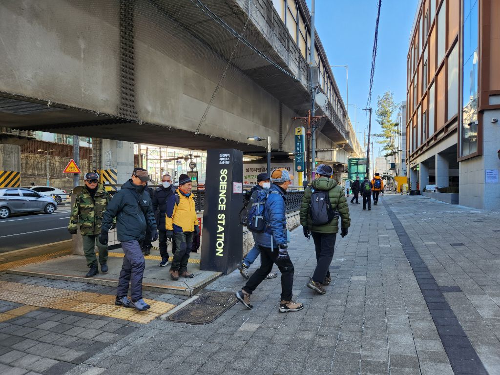 영하 12도의 강추위에 16명의 노익장들이 보무당당하게 걸었다.