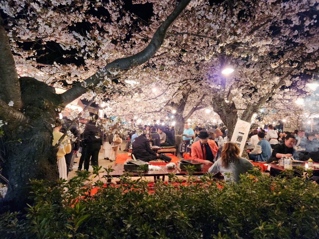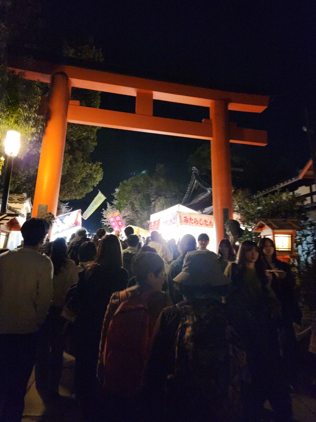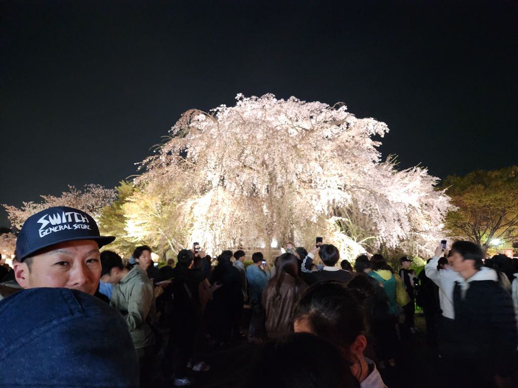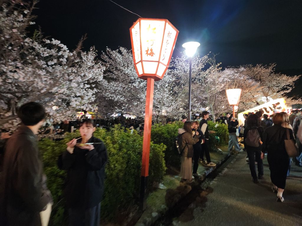 신사 앞 맛집에서 카레밥으로 저녁식사하고 야간 아시카신사 벚꽃에 취하다