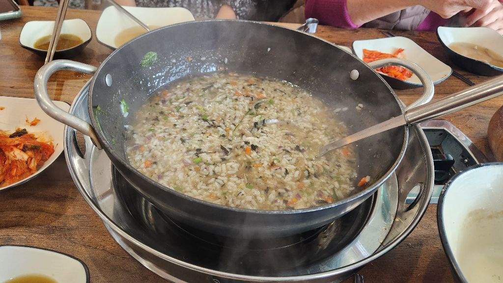 요리된 칼국수를 먹으니 그 맛이 일미다. 죽 또한 맛있다.