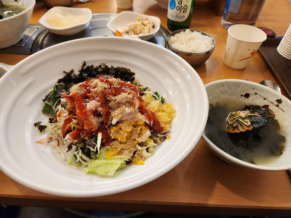 1인분 10,000원에 싱싱한 회가 풍성한 회덥밥이 강성비 최고. 소주 마시는데 별다른 안주 필요 없다. 미역국이 맛있다. 무한 리필 가능하다.