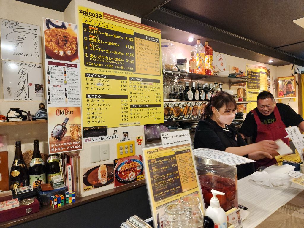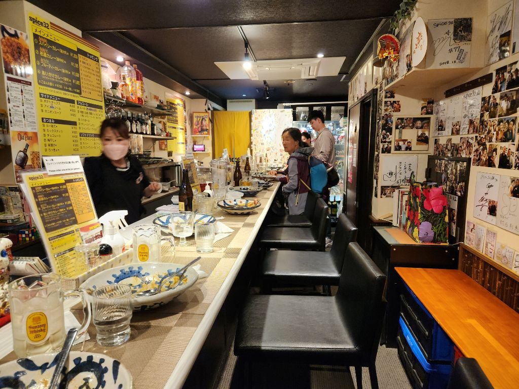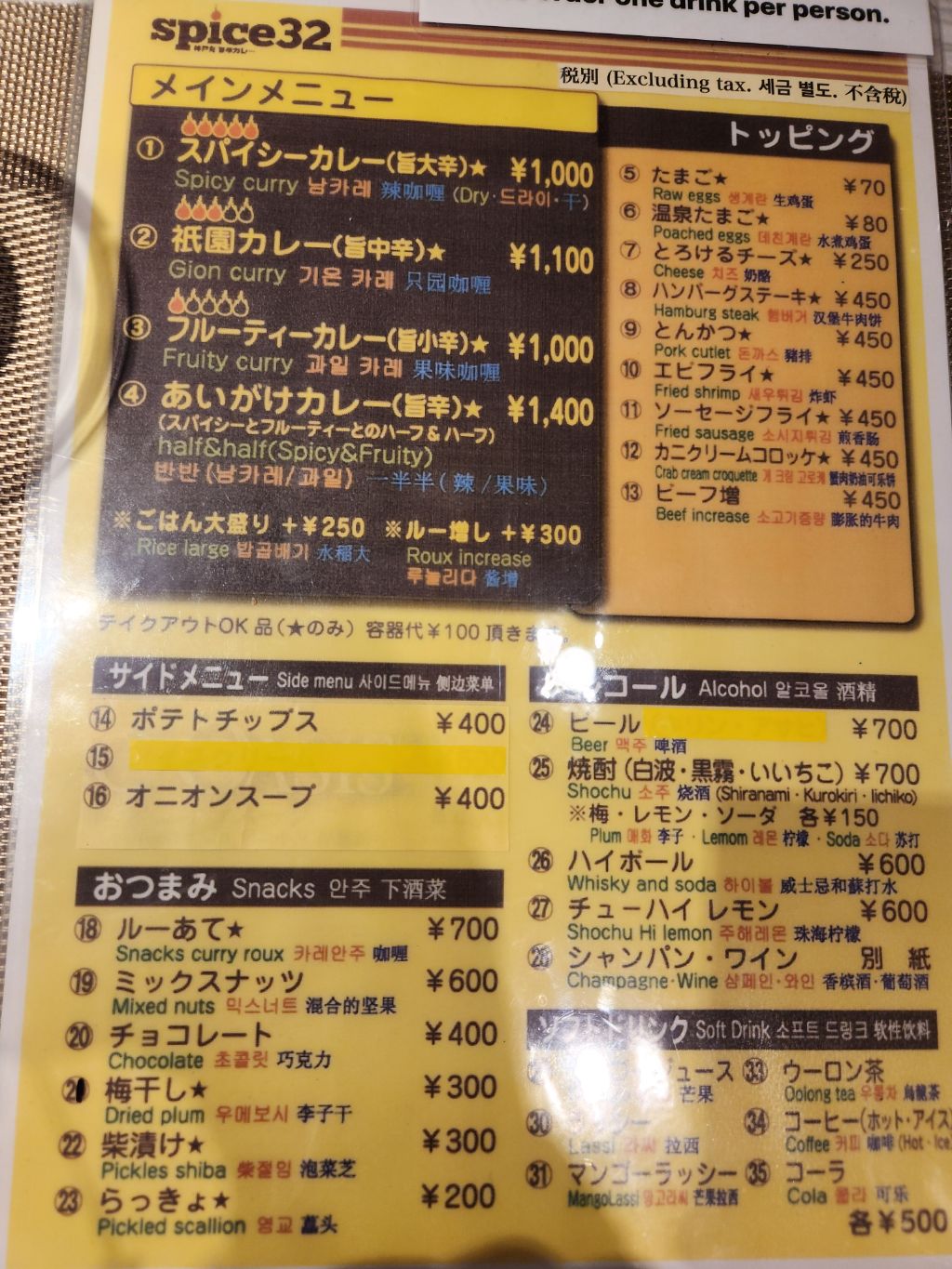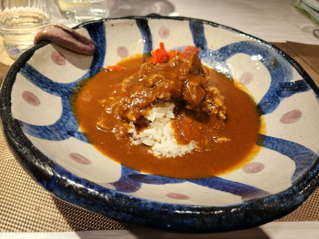 나는 부드러운 과일향의 카레밥(1000엔) 에 소주 잔술 한 잔(700엔)을 주운해서 맛있게 먹다. 소비세 포함 1870엔
