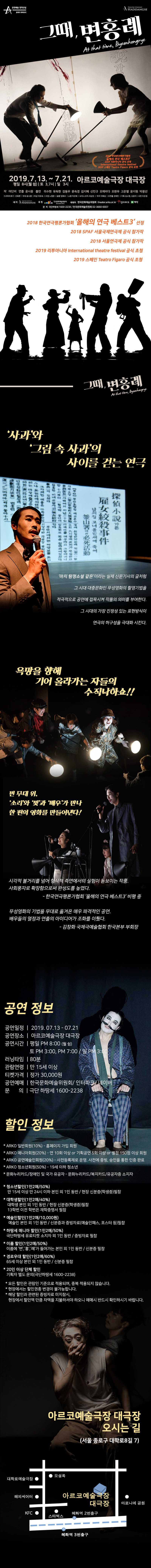 [아르코예술극장] 극단 하땅세 "그 때 변홍례" - 창작산실 올해의 레퍼토리 선정작 작성자하땅세|작성시간19.06.26|조회수69 목록 댓글 0 글자크기 작게가 글자크기 크게가 다음검색 현재 게시글 추가 기능 열기 북마크 공유하기 신고 센터로 신고 댓글 댓글 0 댓글쓰기 답글쓰기 댓글 리스트