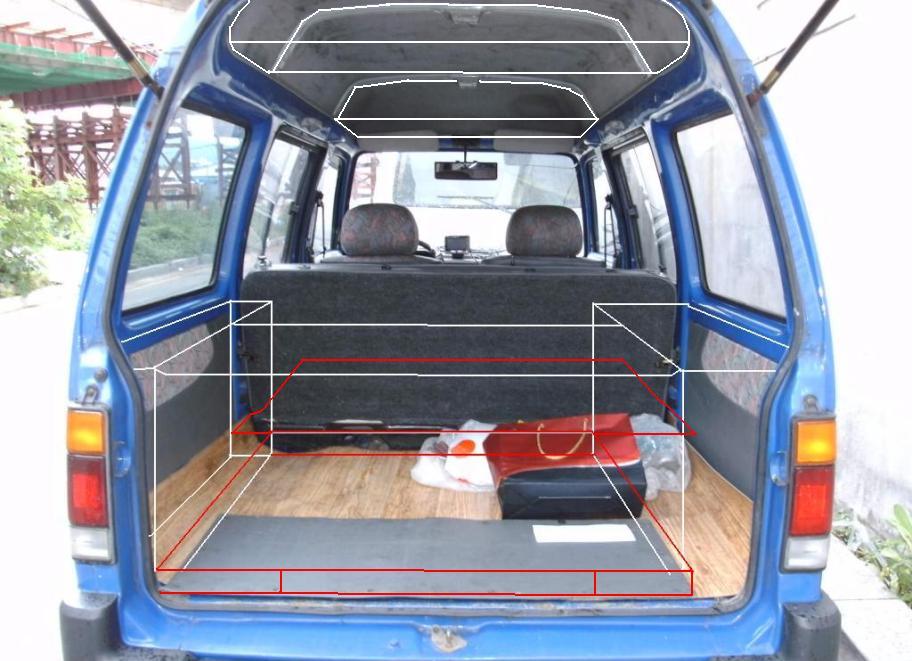 4. 바닦판 경계선 : 2열시트부 바닦판을 열면 밧데리 확인 및 교체가 가능하도록 바닦을 전(2열시트부)