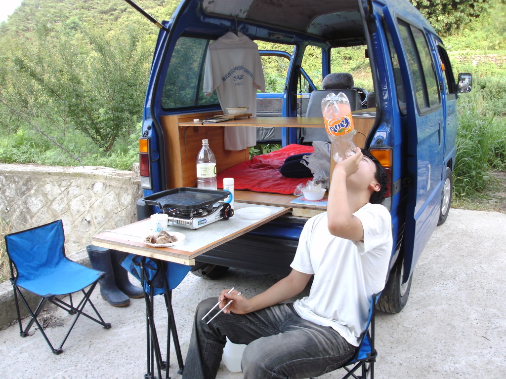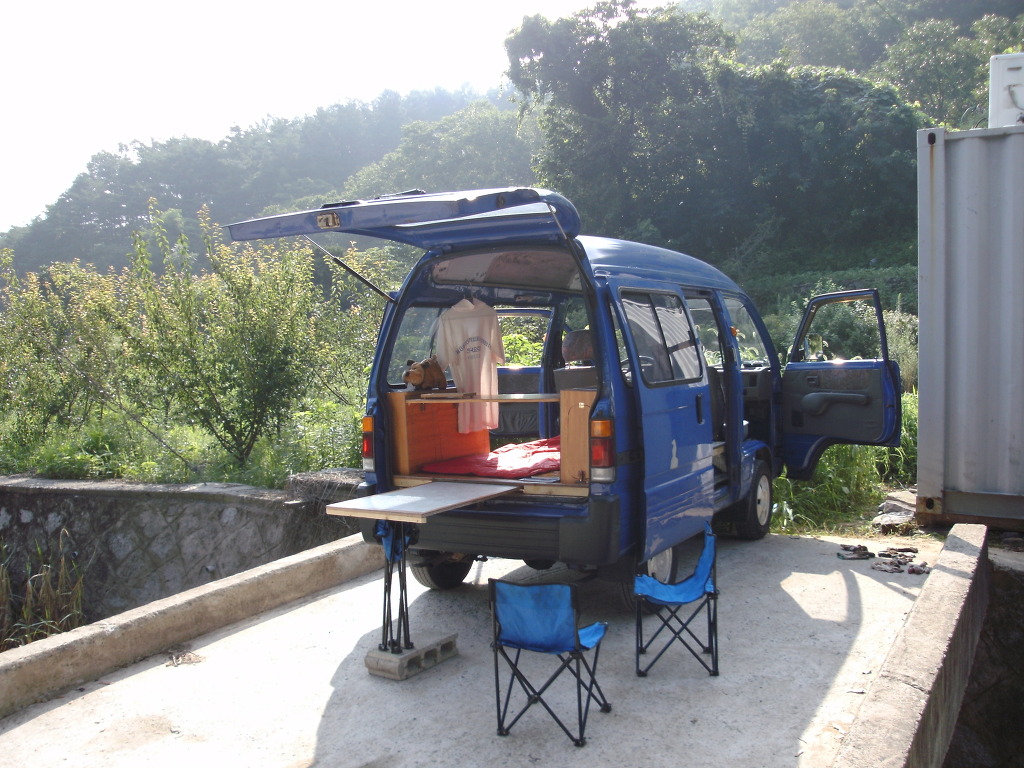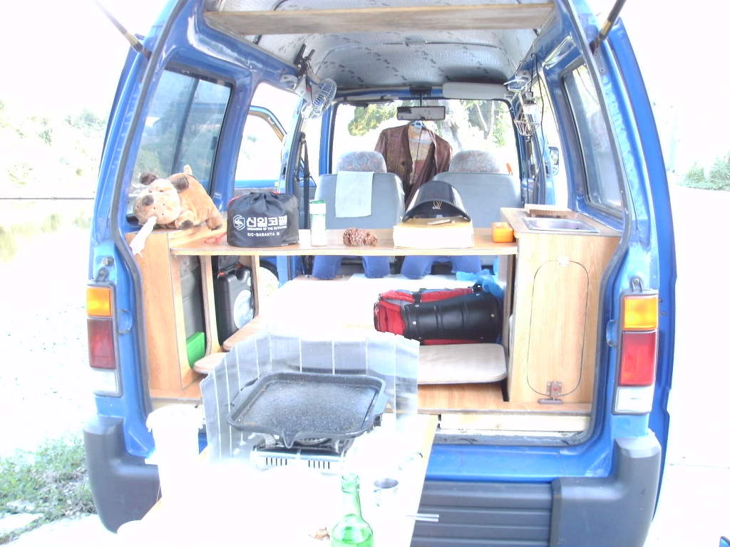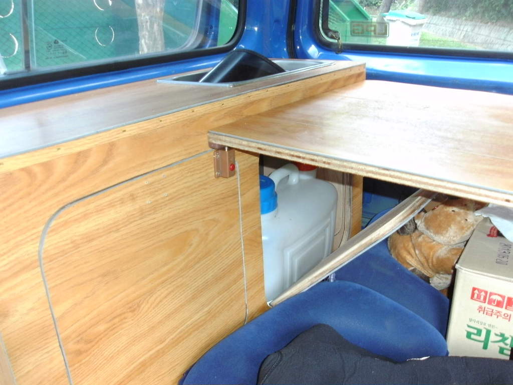 3열부의 뒤바닥판과 싱크대등 수납장은 그대로 고정시킨채 간단한 여행 다니고 있답니다.