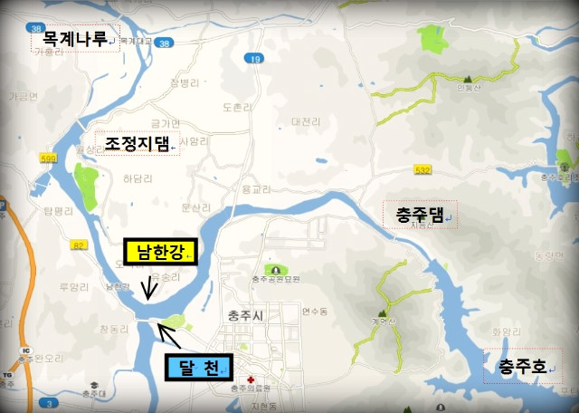 남한강자락은 충주댐에 이르러 넓게 퍼지다 충주댐을 거쳐 괴산 속리산에서 발원하는 달천을 합수하여 여주를 향해 북진한다. 현재의 목계대교 근처에는 조선시대 세곡선의 출발지인 목계나루와 가흥창지가 남아 있다.