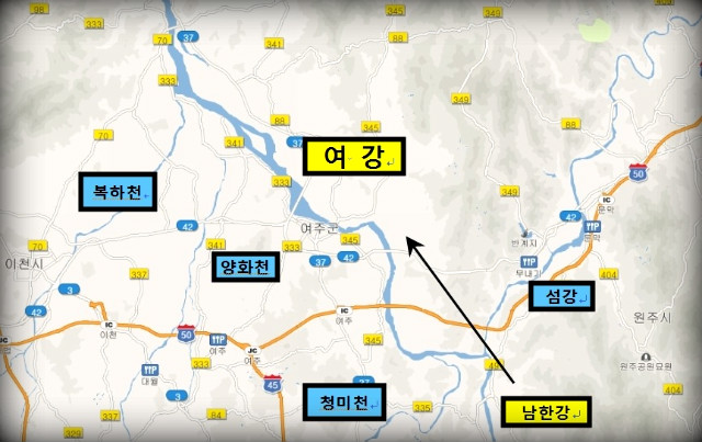 태백에서 발원한 한강은 백두대간을 따라 서향을 하다가 안산 칠현산에서 한남금북정맥으로 갈리어 지는 산세를 따라 북쪽을 향한다. 충주의 목계를 지나 남한강은 여주부근에서 청미천과 원주의 아름다운 섬강을 받아 여주에 들어서 새로운 여강이 된다.