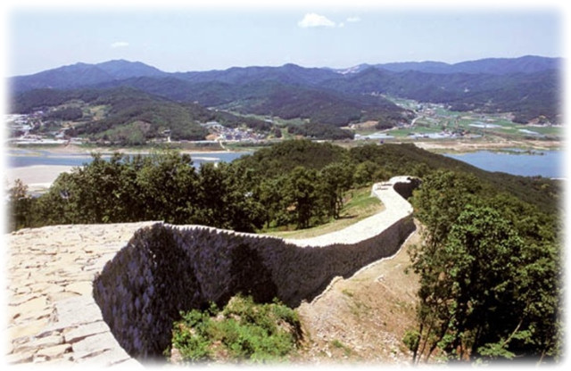 중원고구려비 중앙탑 충주산성에서 본 충주호