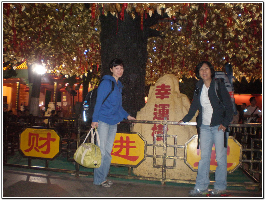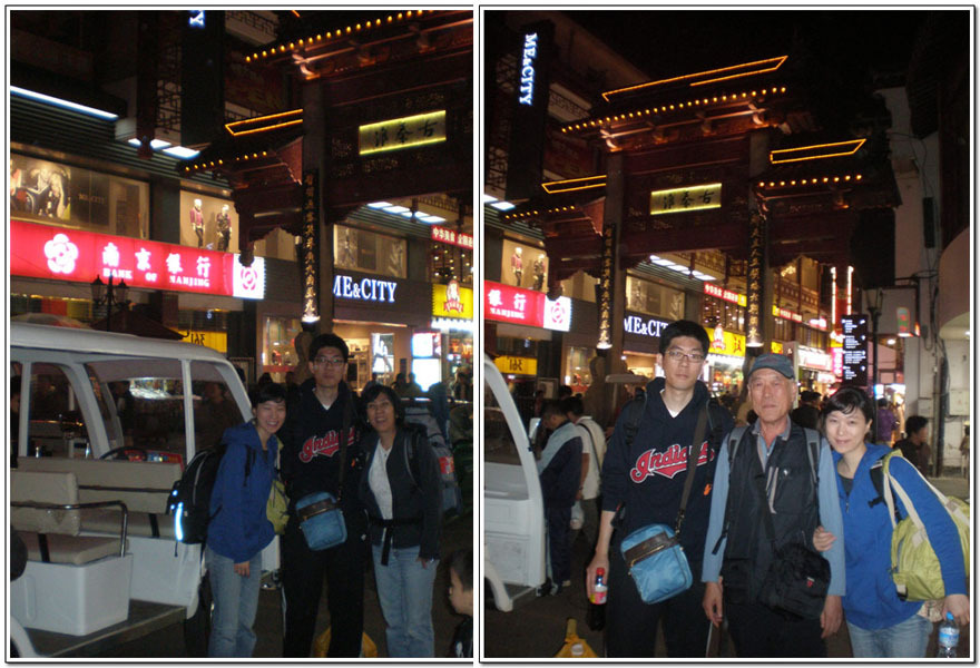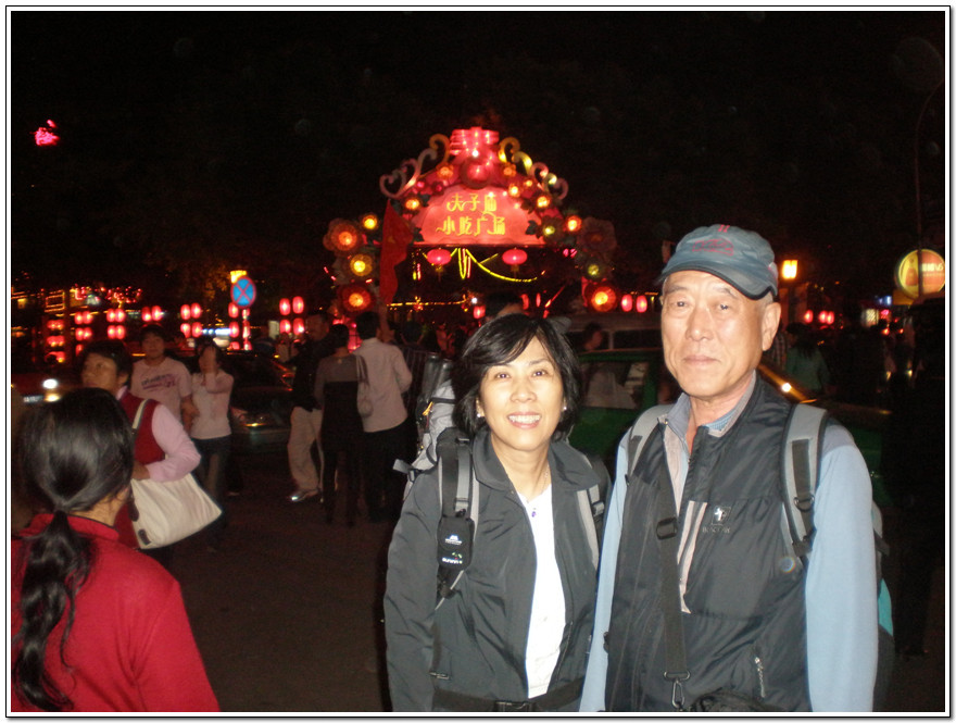동방항공 MU580호기는 정확히 17시30분에 인천공항을 이륙했다. 성식이가 근무하는 항공사 인천지사장의 배려로 우리 부부는 비즈니스 석 8석 중에서 두 자리를 배정받았다. 처음부터 슬리퍼에 수시로 가져다주는 물수건에 식사 후 음료와 다과에 틈만 나면 찾아와 뭐 필요한 것이 없느냐는 등 갖은 서비스가 이코노미 석과는 천지차이가 난다. 기내식은 가자미정식과 등심정식 중 선택. 둘이 하나씩 시켜 나누어 먹었는데 비교적 양호하다. 그 전 여행에서는 눈치만 보느라 망설이기만 했던 캔 맥주도 간단히 3개나 마시고나니 기분이 좋다. 촌놈 호강한다는 말이 실감난다. 2시간 정도의 비행시간이 지루하지 않았다. 난징 루커우공항 도착이 현지시간 18시35분(이후 현지시간)이었다. . . 남경(南京 Nanjing) . 중국 동부의 중앙에 있는 장쑤 성(江蘇省)의 성도(省都)이며 남경대학살의 아픈 역사를 지닌 역사의 도시다. '남쪽의 수도'라는 의미를 가진 난징은 양쯔 강(揚子江)에 연해 있는 항구이자 산업·교통의 중심지이다. 전국시대 초(楚)가 이곳에서 건국한 이래 역대로 동진(東晉)·송(宋)·양(梁)·진(陳) 등의 수도가 되었으며, 또한 1912년 중화민국 임시정부가 이곳에 세워졌고, 1927년 중화민국의 수도가 되었다. . 공항에서의 수속을 마치고 남경시내로 가기 위해 17,000원 정도의 요금을 지불하고 택시를 탔다. 중국의 택시는 거의가 운전석과 승객석 사이를 아크릴로 차단한 것이 특이하다. 22시10분에 황산행 기차를 타야하기 때문에 남경관광은 저녁식사 시간까지 합해서 3시간 정도의 여유밖에 없다. 그래서 가장 번화한 거리에 있는 부자묘의 야경만을 구경하기로 했다. . 택시에서 내린 부자묘 입구부터 현란한 조명으로 거리와 공원은 삐까뻔쩍 그대로이다. 축제라도 있는 것일까? 거리는 오가는 사람들로 북적이며 마치 크리스마스이브의 명동거리를 연상하게 한다. 남경시 외곽의 칙칙한 어둠과 많이 비교가 된다. 100m 정도를 걸어가니 거기에 부자묘가 있었다.