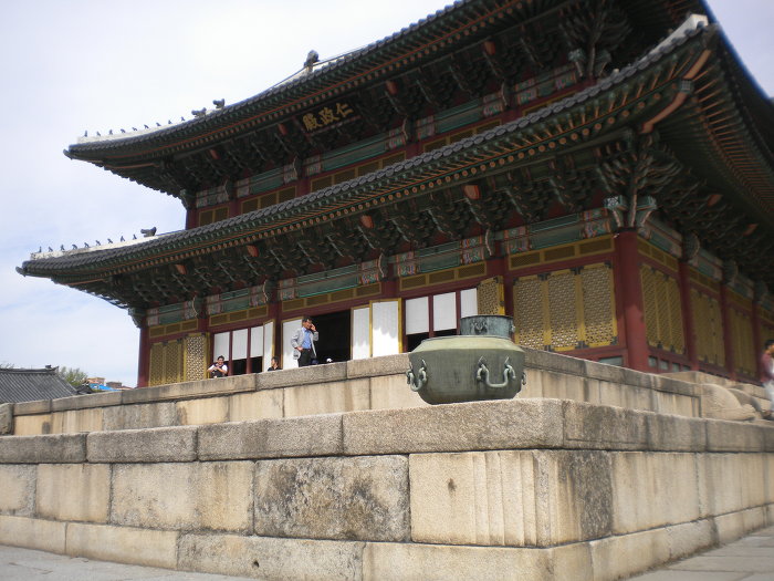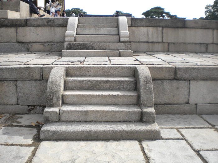 인정전은 높은 댓돌 위에 서 있다. 보통 한옥의 기단의 구조와는 다른 댓돌이다.