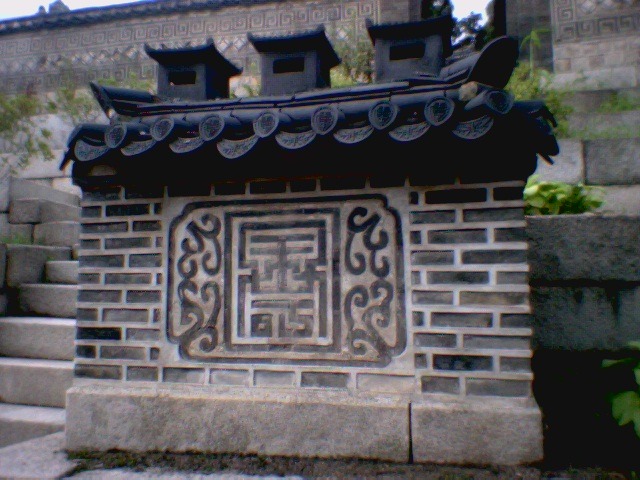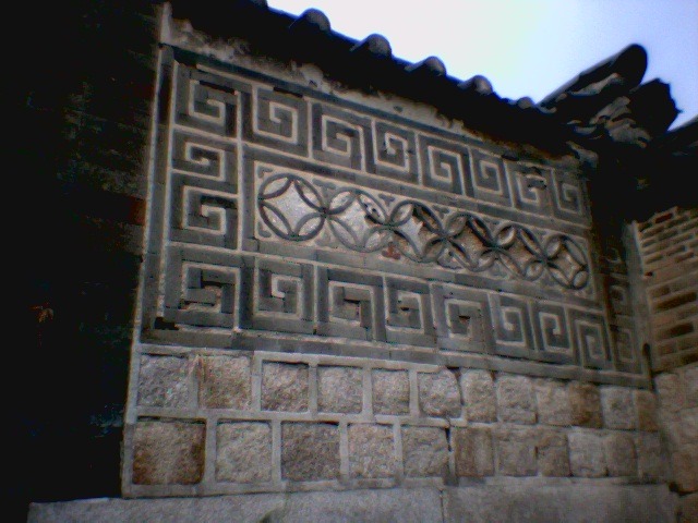 좌우로 밀어 열게 된 넌출문이 달렸다. 바깥쪽 문 좌우 담벽에는 수복등의 길상무늬와 꽃무늬로 가득하게 채웠다.