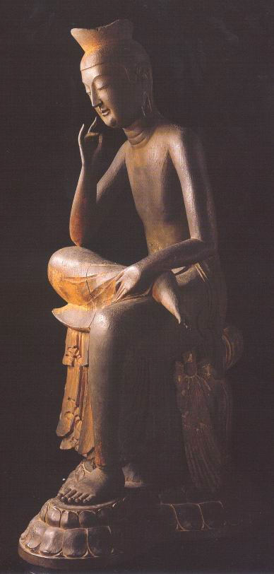 이 불상은 일본 국보제1호 목조미륵 반가 사유상(半跏思惟像)이다.