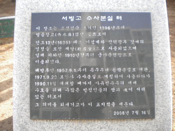 그 작은 공원 안에는 '서빙고 수사분실 터'이었음을 밝히는 표석을 세웠다.