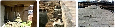 기둥돌 아래에는 받침돌이 네모난 주춧돌을 지탱하고 있으며, 주춧돌 사이에는 포석을 깔아 기초를 단단히 하였다.