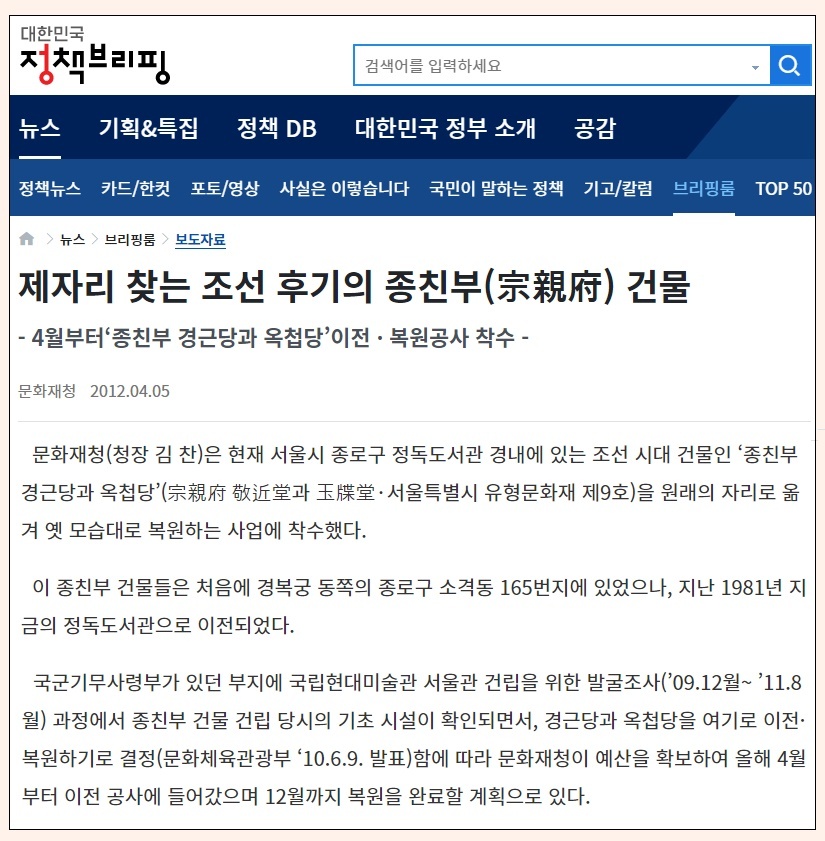[출처: 한국민족문화대백과사전(종친부 경근당과 옥첩당(宗親府敬近堂─玉牒堂))]