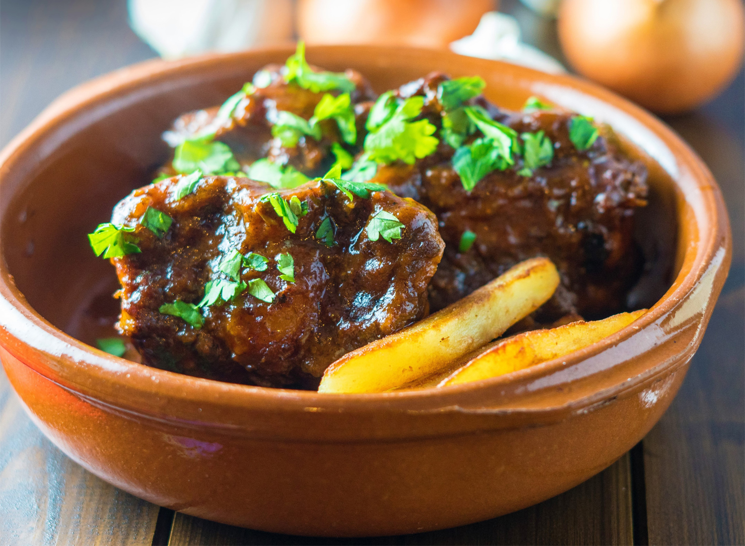 내용물이 노릇노릇해지면 육수, 셰리 와인, 사프란, 월계수잎을 추가하여 약한 불에서 3시간 정도 삶는다. 소꼬리가 충분히 익으면 월계수잎은 버리고, 파슬리를 뿌려내면 완성이다.