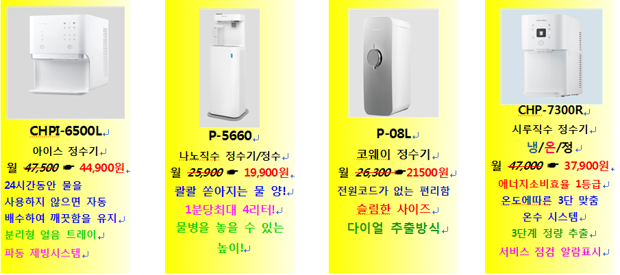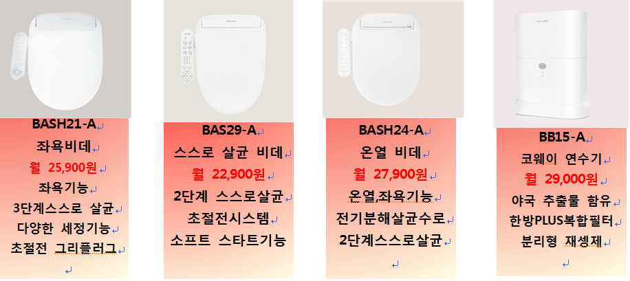 #정수기 #비데 #공기청정기 #연수기 #매트리스