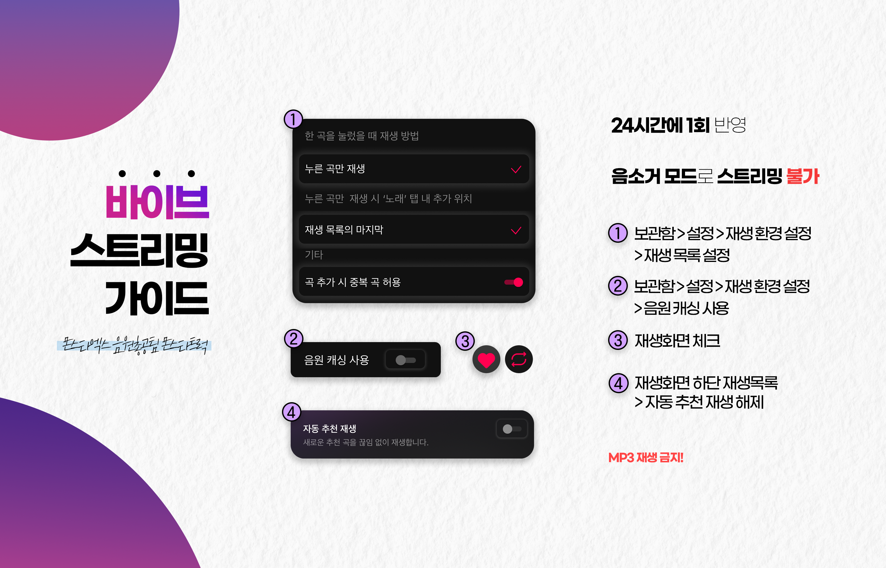 - 반복재생 / 한곡재생 / 셔플 금지