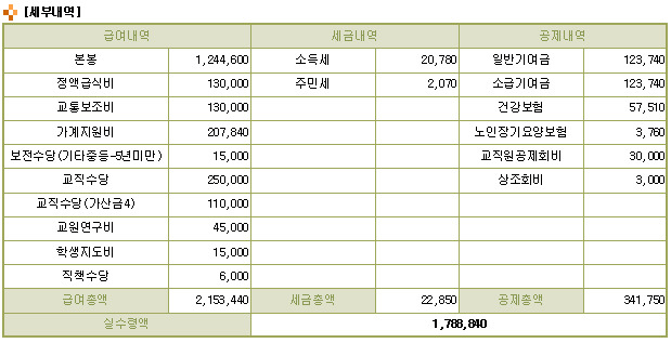 작성자유토포스 작성시간 10.05.14 교직수당(가산금4)이 담임수당이네요.